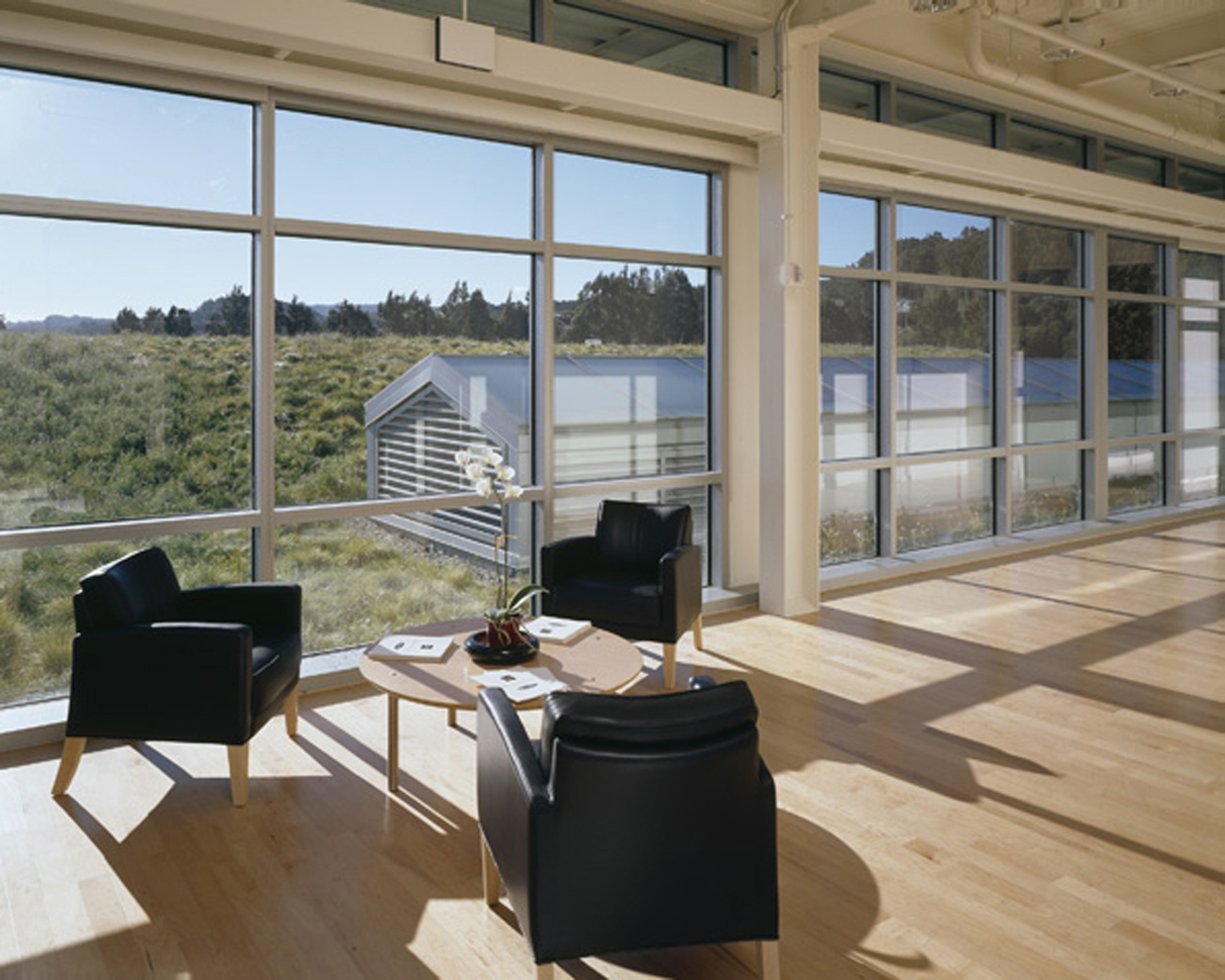 and reduced the demand on local storm sewers. In addition, the presence of native grasses and wildflowers on the roof helps the building blend with the surrounding landscape.