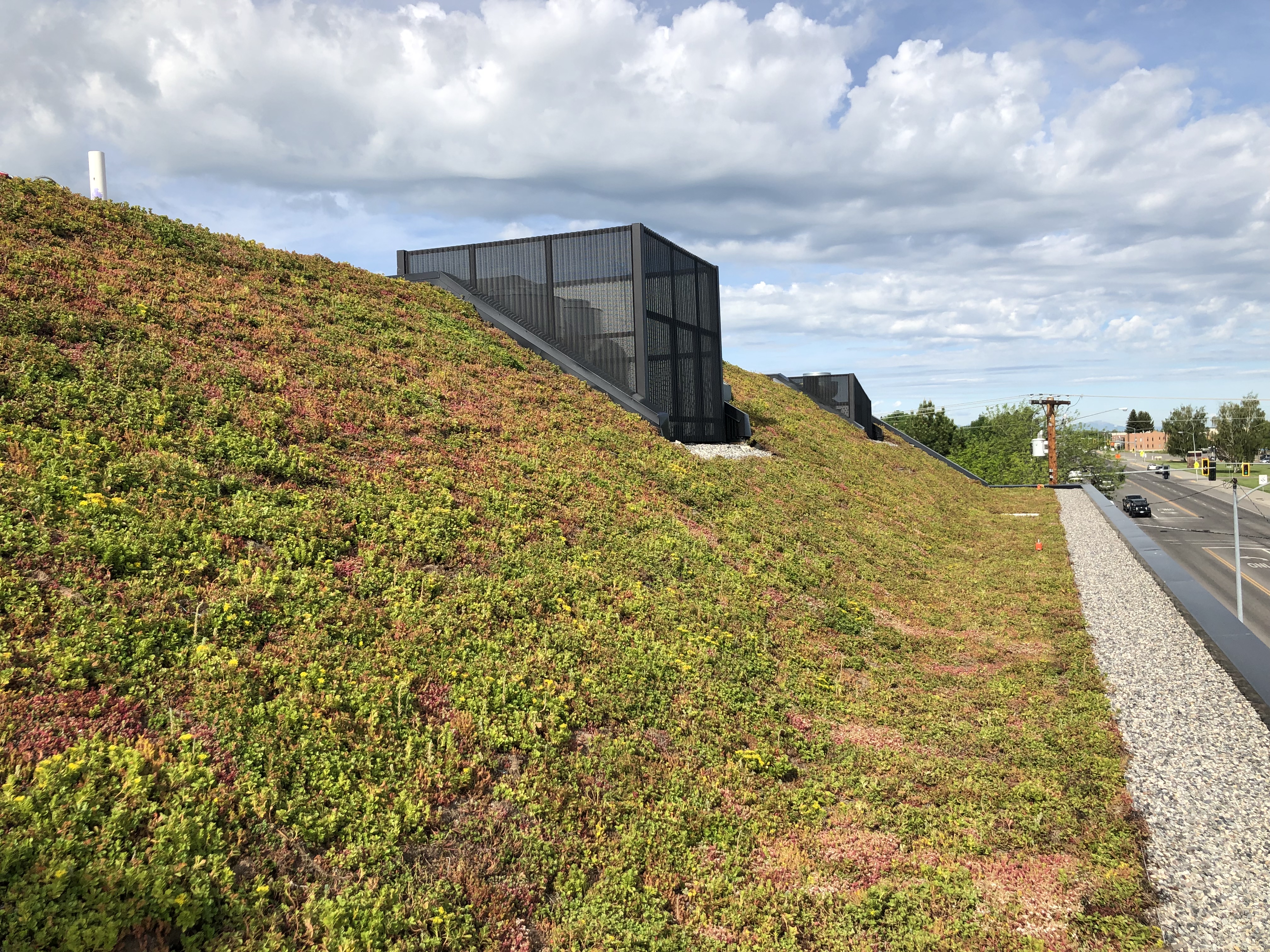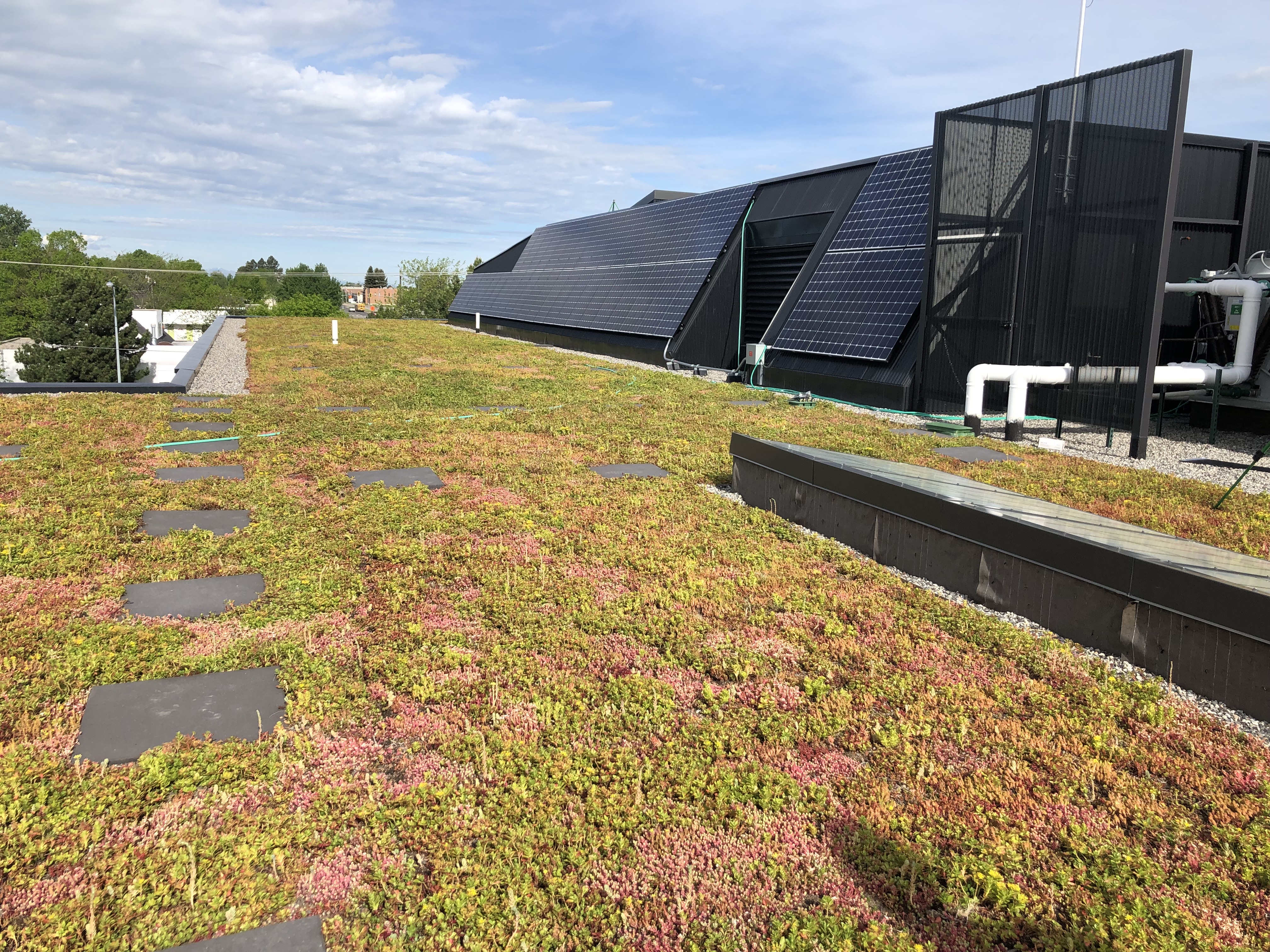 Our GardNet® growing media confinement system was used on the steep-sloped portion of the roof structure to help showcase the CoOp’s beautiful Extensive Garden Roof installation.