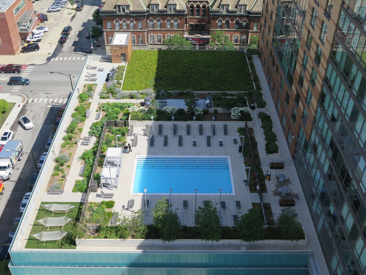 The Spoke mixed-use development in Chicago's River West neighborhood boasts great views of the skyline thanks to the amenity space completed with Hydrotech's Ultimate Assembly and Garden Roof Assembly.