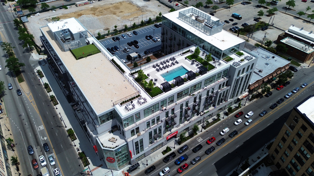 SIx Corners Lofts reimaines a 1938 Sears building into a 6-story multifamily apartment complex with retail space at the ground floor. After a series of additions and innovative design changes, the complex is elevated with access to more natural lights, green roof space, a pool, and plenty of communcal areas to foster community engegament.