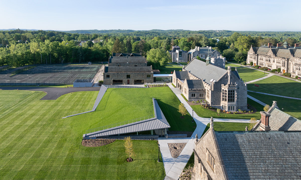The new performing arts center expansion at the Emma Willard School in Troy, NY features a 13,000 sq. ft. fully accessible green roof. The expansion stretches over the ground level, arches above the new below-ground space, where the Wallace Center Arts Wing is now located, and connects to the new entrance. This expansive rooftop lawn bridges a connection between the natural and built landscape, giving more accessible areas for students to relax and host activities.